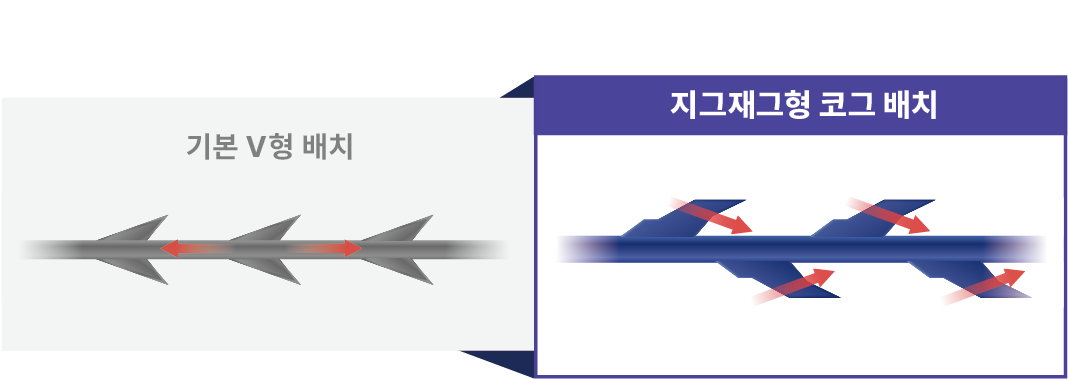■ 풀림 현상 최소화 지그재그형 가시 배치
