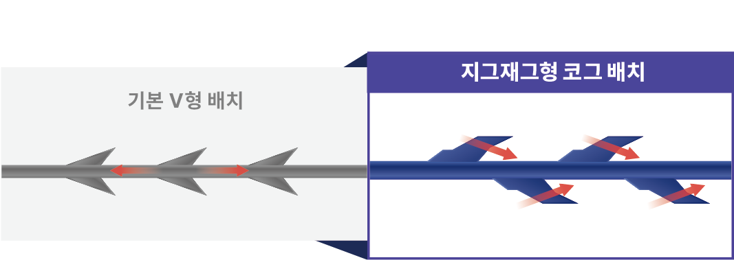 ■ 풀림 현상 최소화 지그재그형 가시 배치